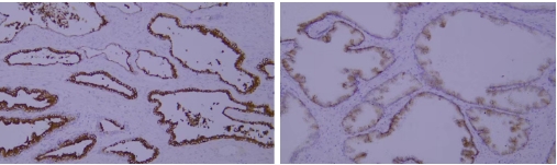 Typical example: Staining of paraffin-embedded human prostate cancer tissue sections with different PSAP antibodies:
