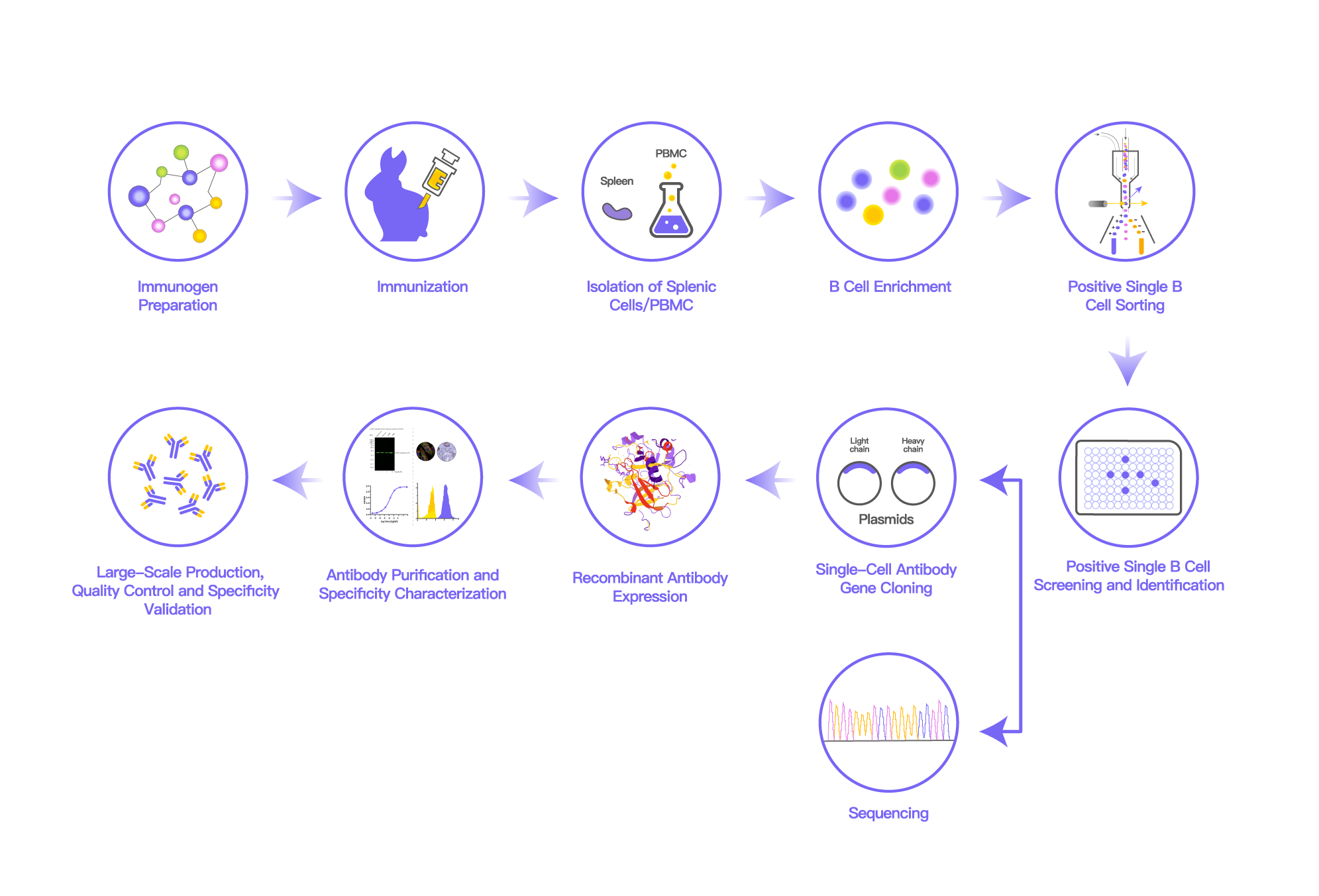 High Purity Guaranteed by Advanced Process: Antibody variable region genes from positive B cells are cloned, and recombinant production is carried out using a serum-free eukaryotic expression system. Combined with affinity and ion-exchange chromatography purification, high-purity antibodies are obtained.